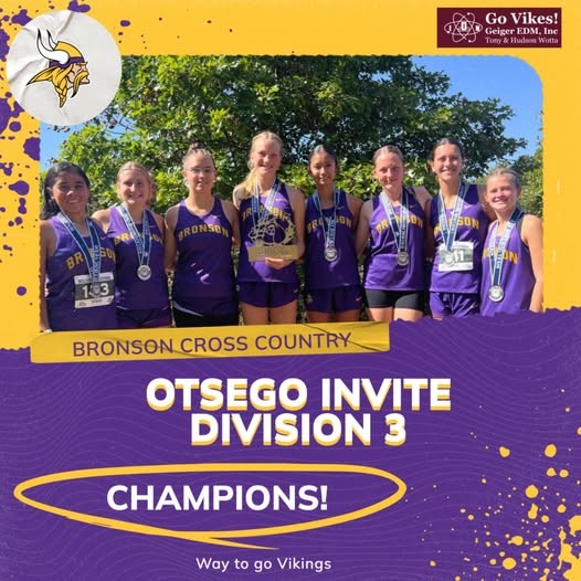 (OTSEGO) – The Bronson girls cross country team finished first and the boys team came in second in the Division 3 part of the Otsego Invitational. In the girls race, Ashlynn Harris finished second overall and Miriam Sanchez was third. For the boys Brayton Cosby was fifth and Adam Franks was tenth.