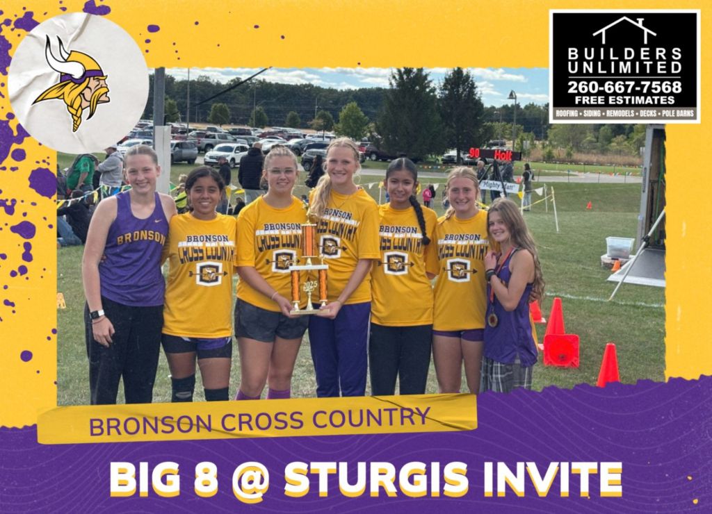 (STURGIS) – Bronson’s cross country teams were at the 61st Sturgis Kiwanis Invitational with the Lady Vikings finishing second overall and the boys seventh. In the girls race, Ashlynn Harris was fourth and Miriam Sanchez finished 11th. For the boys, Brayton Cosby was 34th and Denver Siler was 46th.
