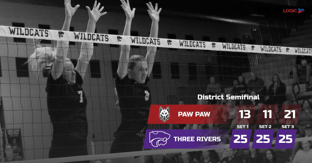 (VICKSBURG) – Three Rivers picked up a volleyball win over Paw Paw 3-0 in their Division 2 District semi-final match. Miley Southland had 25 assists, 5 kills and 14 digs for the Lady Wildcats. Braylee Burg had 5 kills and 5 blocks while Dani Glass had 11 kills and 10 digs on the night. Three Rivers will take on Harper Creek in the District Finals, after Harper Creek beat host Vicksburg 3-2 in their semi-final match.