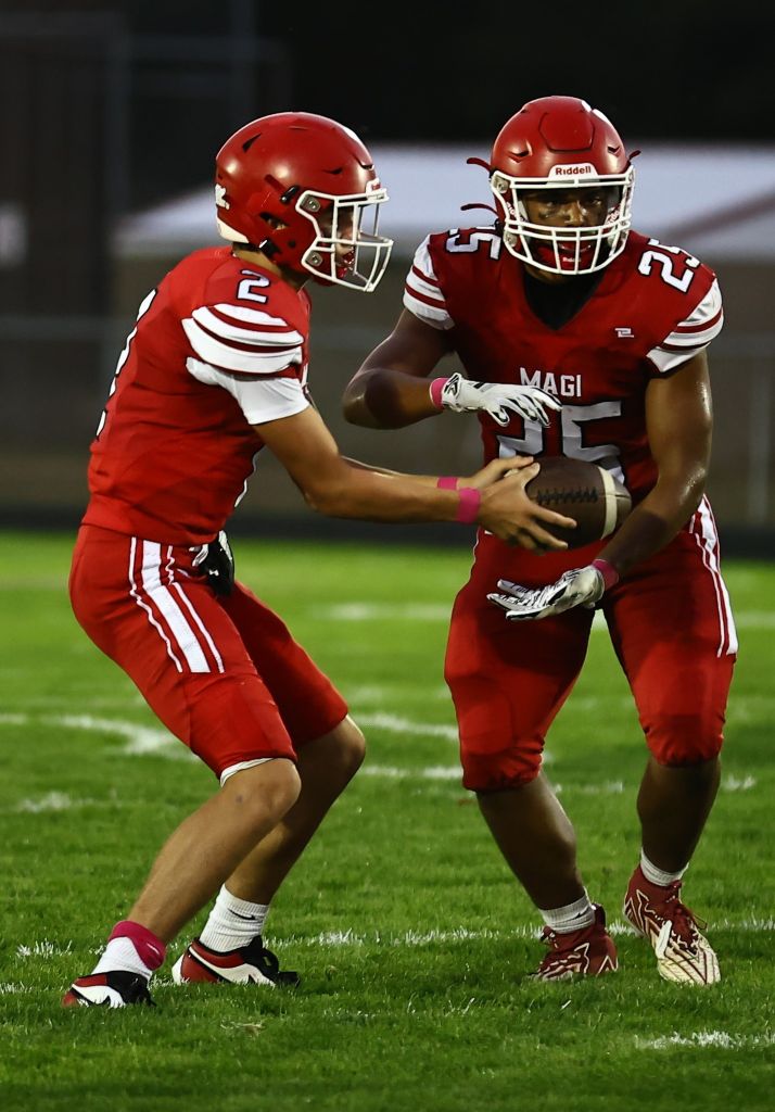 (COLON) - Host Colon scored 28 first quarter points as they went on to beat Athens 54-0 in an SCAA Red Division 8 man football battle. Jabari Falls had 5 carries for 109 yards and 2 touchdowns in the win. Jeremiah West was 7 of 10 for 205 yards and 2 scores, plus he had 4 carries for 12 yards and 3 more touchdowns. Dalton Williams had 3 receptions for 130 yards and a score. Parker Nystrom led the Magi defense with 9 tackles. Tucker Davis and Michael House each had 8 tackles. Colon is now 4-3 overall and 2-2 in the Red Division. Athens is 0-7 and 0-4 in the Division.