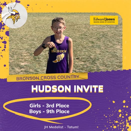 (HUDSON) – The Bronson cross country teams ran in the Hudson Booster Invitational. In the Upper Division race, the Bronson girls finished third and the Bronson boys were ninth. In the girls race, Ashlynn Harris was fourth and Miriam Sanchez was tenth. For the boys, Brayton Cosby came in 19th and Denver Siler was 28th.
